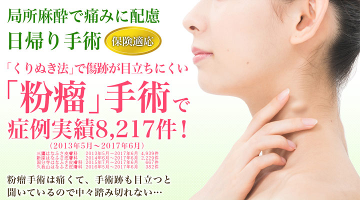 当院では皮膚腫瘍に悩む方やかかりつけ院で手術を断られてしまった方、外見上のコンプレックスにお悩みの方が多くご来院されています。また、美容皮膚科はシミ、たるみ、薄毛のみならず創傷治癒に着目した傷跡治療、ニキビ跡治療やニキビ跡に対する手術も行い、決して“あきらめない治療”を実践しております。
